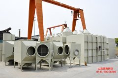 廢氣凈化塔 的生產工藝以及使用事項? 廢氣凈化塔選用玻璃鋼制作。塔體外外表選用耐水、耐老化膠衣樹脂作防老化面層,膠衣層厚不小于0.5mm。在強度與表里外表間選用無堿無蠟無捻